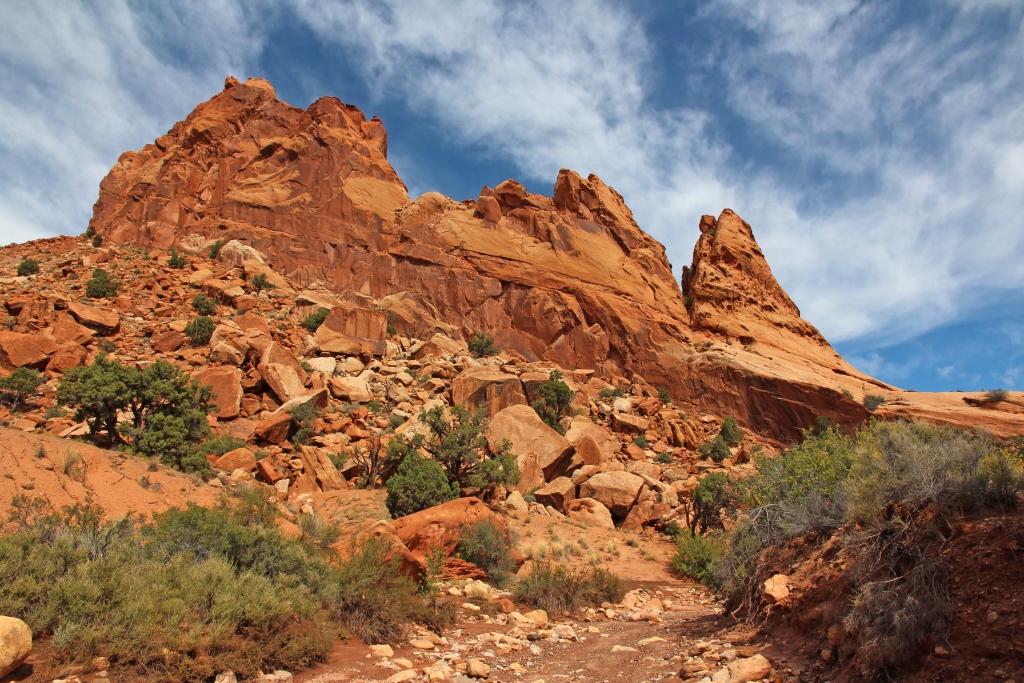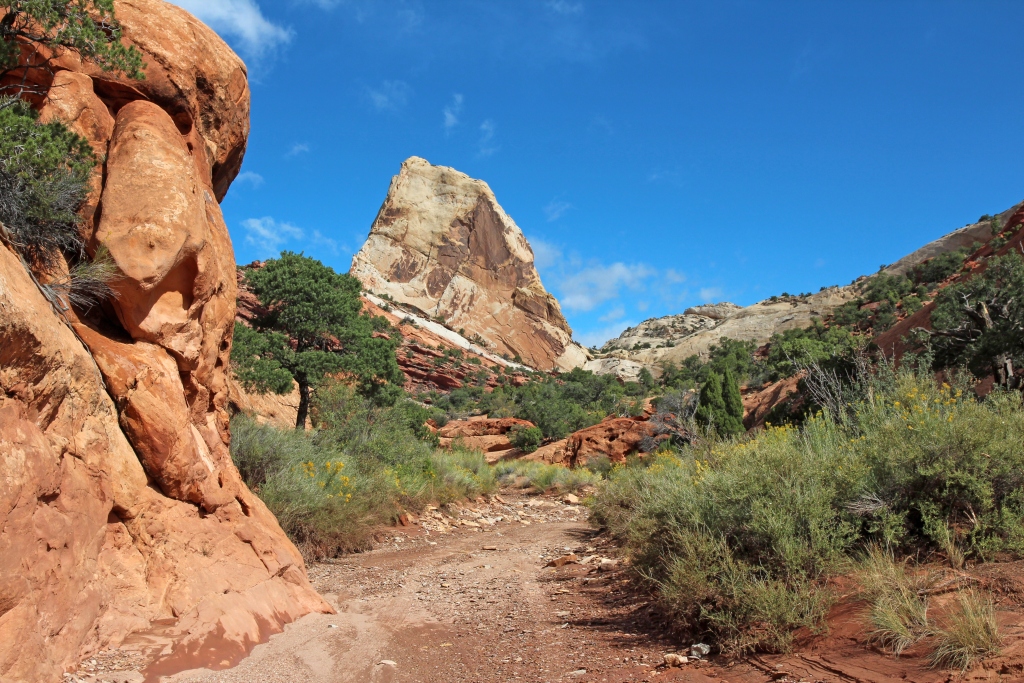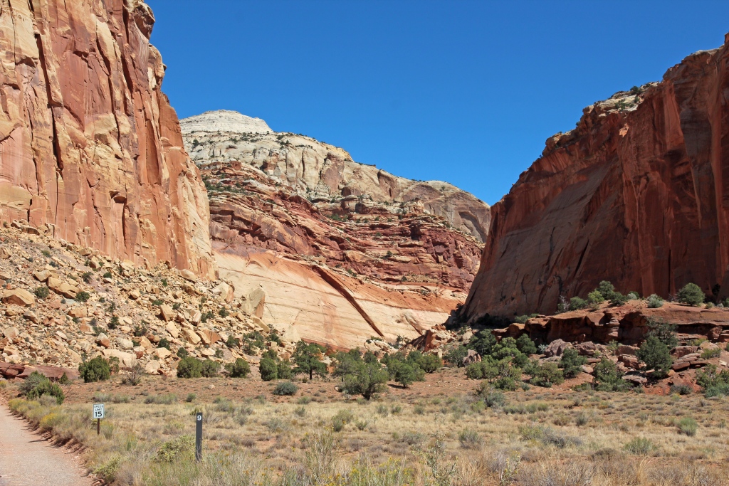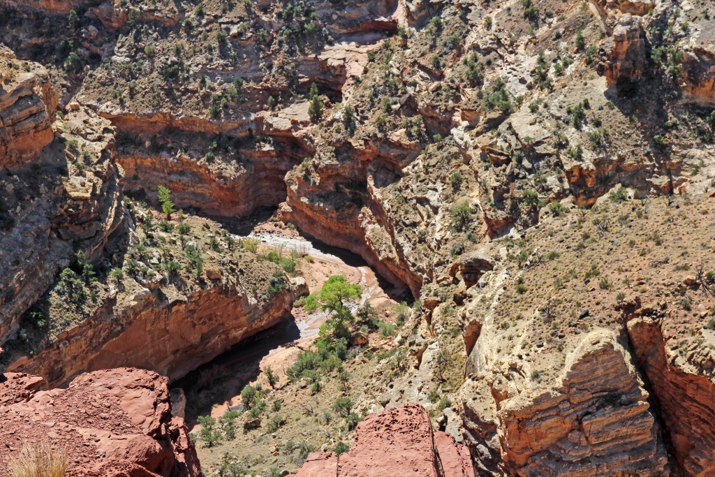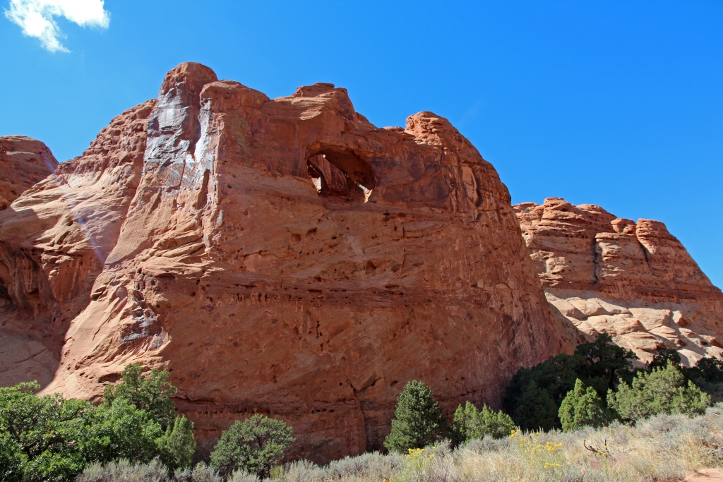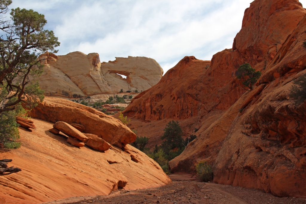 Wir fahren als erstes in den Ort zum City Market, um Wasser und Bier zu kaufen. Ein paar Joghurts müssen es auch noch sein. Zunächst steht die Morning Glory Bridge auf dem Programm. Daher geht es Richtung Norden und auf die UT 128. Am richtigen Parkplatz fahren wir erst vorbei, weil in keiner Beschreibung steht, daß es sich um den Granstaff Trailhead handelt. Auf dem Rückweg biegen wir auf gut Glück ein, weil die Entfernung in etwa stimmt und siehe da, wir sind richtig. Wir sind am Negro Bill Canyon, der wirklich und immer noch so heißt, obwohl es 2012 eine Initiative zur politisch korrekten Umbenamsung gab (eine erste gab es schon, bis in die 60er hieß er „Nigger Bill Canyon“). Nur eben an der Beschilderung an der Straße wurde der Namenswechsel zu Granstaff Trail vollzogen.
