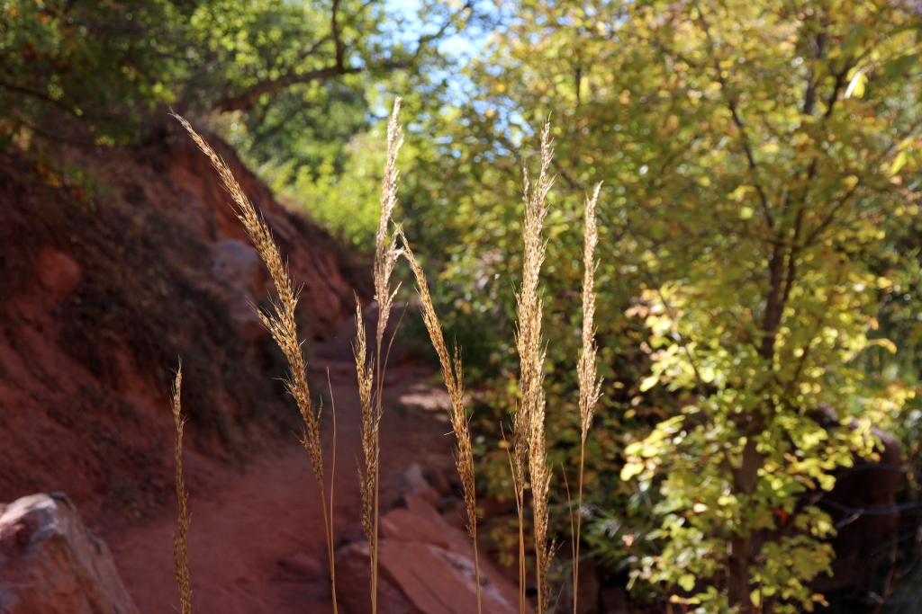 Am Visitor Center angekommen scheint sogar die Sonne. Wir lassen uns vom Ranger beraten, was an kurzen Trails angesichts der Feuchtigkeit zu empfehlen ist. Er rät uns zu einer Kombination von Pink Ledges Trail, Hoodoo Trail und Birdseye Trail, die direkt vom Visitor Center aus zu gehen ist. Vom Photo Trail rät er ausdrücklich ab: zu feucht und zu rutschig.