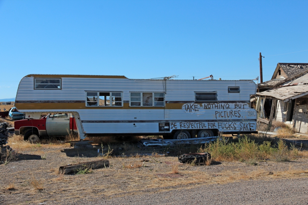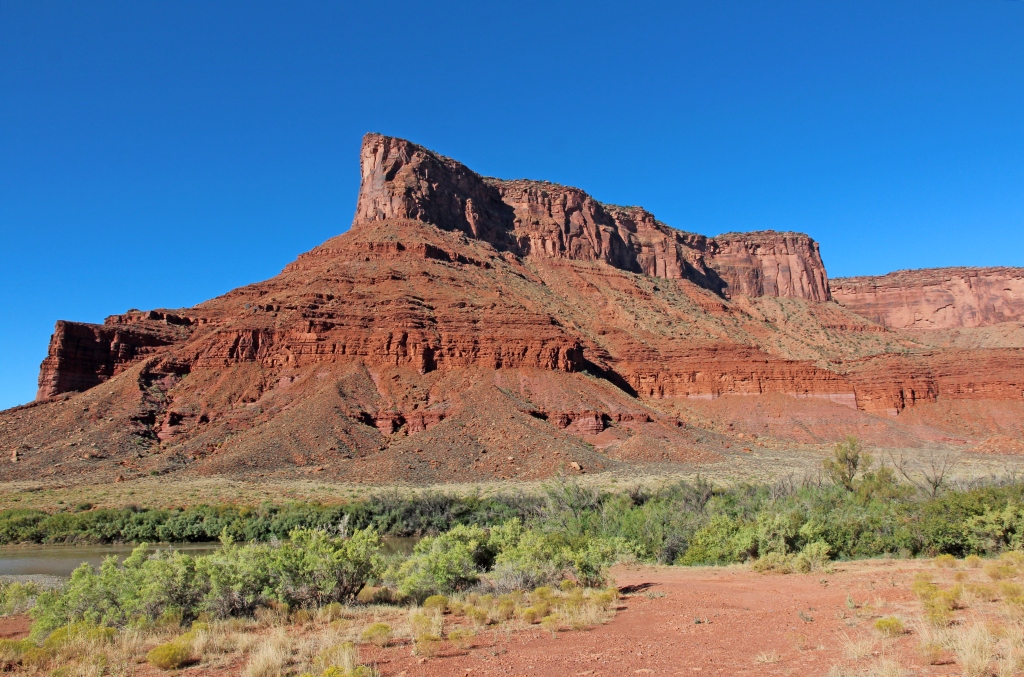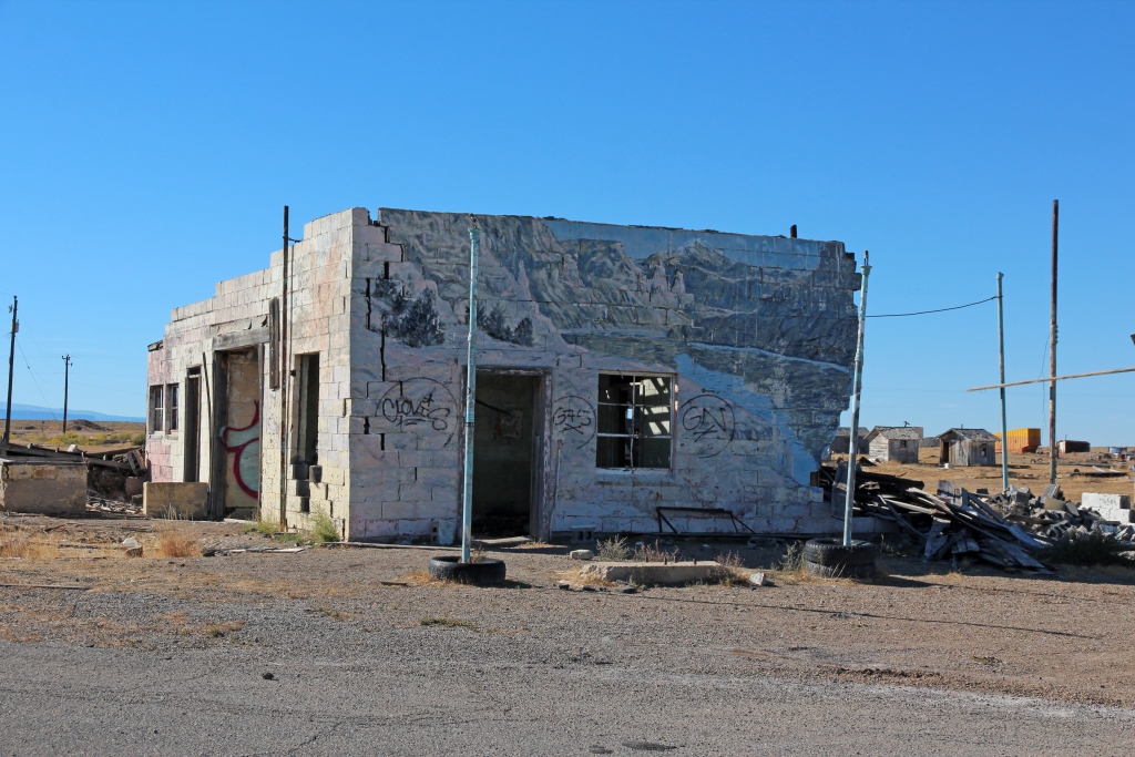 Nachdem wir das Auto beladen haben, fahren wir noch kurz in den Ort, um zu tanken. Auch hier geht das wieder völlig problemlos ohne ZIP oder andere Faxen. Dann machen wir uns auf den Weg auf die 128, die zwischen den roten Felsen am Colorado entlangführt. Einige Fotostops müssen sein. Auch in Cisco fahren wir einmal hin und her, um die Gebäude zu fotografieren, die wir vor Jahren schon aufgenommen hatten. Cisco hat sich sicher nicht zu seinem Besseren verändert.