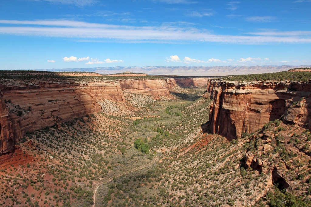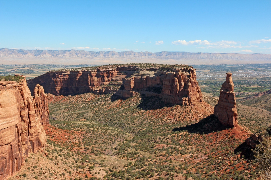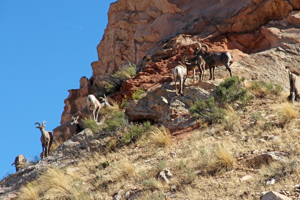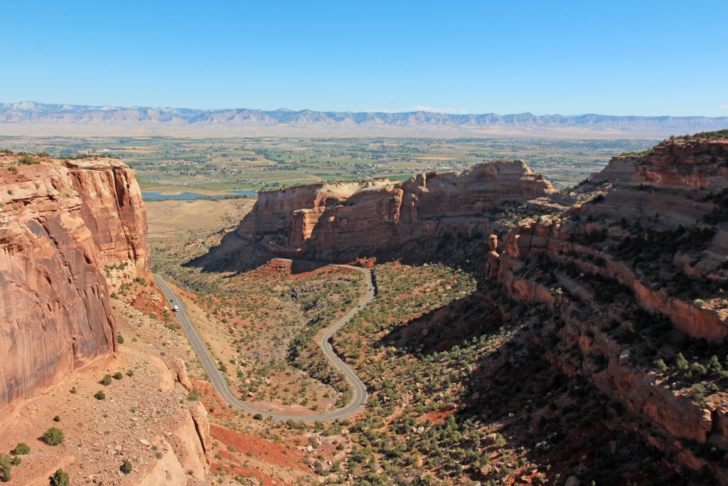 Dann geht es auf die Interstate bis Fruita vor Grand Junction. Dort folgen wir den Wegweisern zum Colorado NM. Unmittelbar nach der Einfahrt wartet auf uns eine Gruppe Bighorn Sheep im Gelände. Wir fahren die Rim Rock Road mit vielen tollen Ausblicken, die wir in amerikanischer Manier absolvieren: Halten, manchmal aussteigen, selten etwas laufen. Canyons, Felsnadeln und köhlerofenartige Felsformationen gilt es zu besichtigen: Balanced Rock, Ottos Trail, Grand View, Coke Ovens Overlook, Artists Point, Highland View, Upper Ute Canyon View, Ute Canyon View (ohne upper), Red Canyon Overlook.
