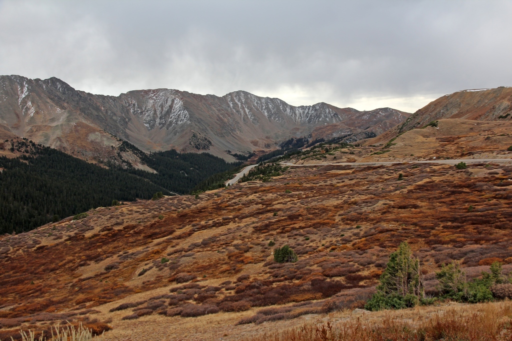 Es wird zunehmend trübe. Dennoch fahren wir den Loveland Pass hinauf, da der Umweg nur gering ist. Oben ist es kalt und die Aussicht ist vom grauen Himmel beeinträchtigt, so daß wir nur einen kurzen Stop einlegen.