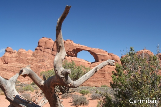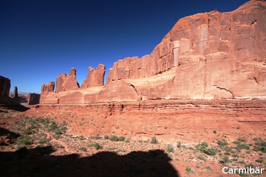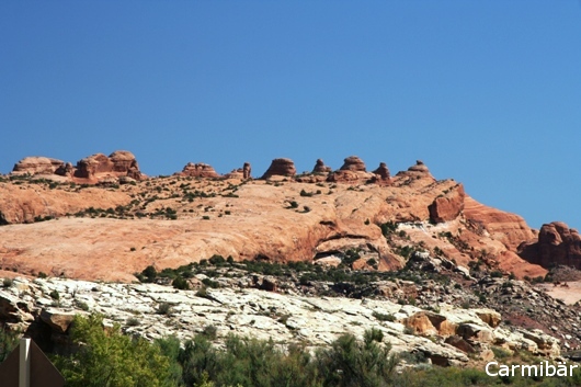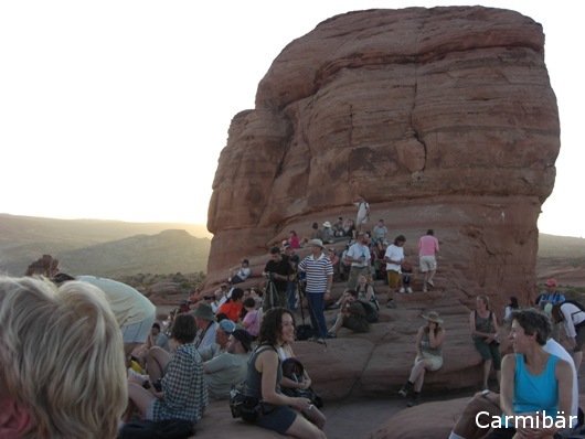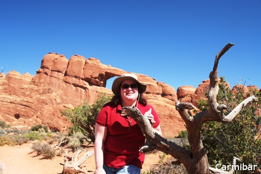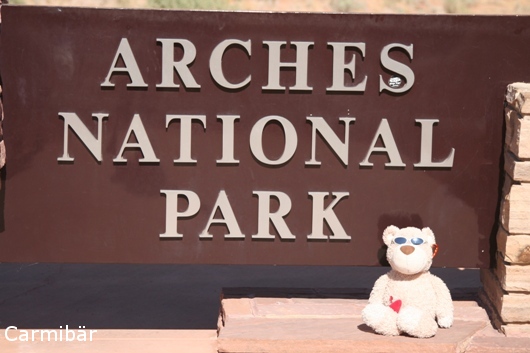 So gegen 11 h sind wir dann wieder alle zum Arches N.P. aufgebrochen. Wir sind den kompletten Scenic Drive gefahren und haben einige Fotostopps eingelegt. Am Devils Garden war es so voll, das wir keinen Parkplatz bekommen haben und da es ausserdem zu heiß war, war es der Carmen nur ganz recht, dass sie nicht mehr laufen musste.