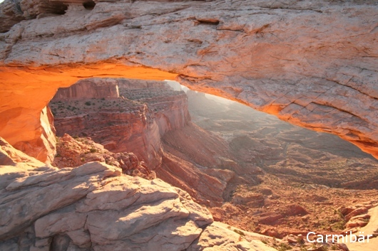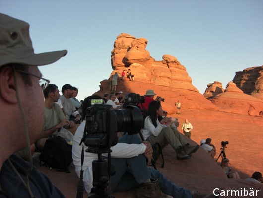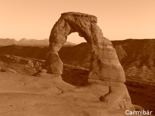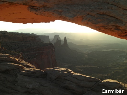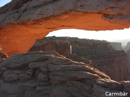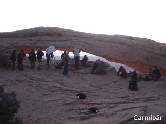 13. Tag Donnerstag, 25.09.2009Der Wecker hat um 5.10 h geklingelt. Das ist wirklich eine unchristliche Zeit. Ich wollte mit Knut noch ein wenig im Bett bleiben, aber die Carmen war unerbittlich und hat uns rausgescheucht. Wir wollten ja schließlich pünktlich zum Sonneaufgang am Mesa Arch sein. Aber eigentlich hätten wir noch ein wenig früher losfahren sollen, damit wir einen besseren Platz zum Fotografieren bekommen. Werden wir uns für das nächste Mal einfach merken und die Carmen muss uns einfach aus dem Bettchen schmeißen, dann klappt das bestimmt.