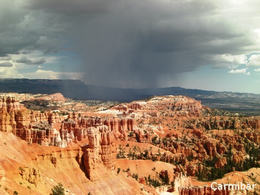 Wir haben erstmal gepackt und alles im Auto verstaut. Aber alles mit einer Seelenruhe. Danach sind wir noch mal zum Bryce Point, zur Natural Bridge und zum Farview Canyon gefahren. Wollte doch unbedingt noch ein paar Sonnenbilder von mir haben. Und ich habe sie auch bekommen. Die Sonne hat sich doch tatsächlich wieder gezeigt. Aber es waren trotzdem ein paar dunkle Wolken am Himmel zu sehen.