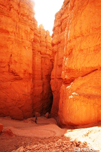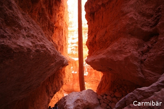 Wir mussten erstmal einen Parkplatz suchen, da es ziemlich voll war. Aber wir hatten Glück und es fuhr gerade jemand weg und da ist die Carmen doch glatt ganz schnell in die Parklücke gehuscht. Dann haben wir unser sieben Sachen zusammen gesucht und haben uns auf den Weg zum Navajo Trail gemacht. Wenn man sich mal die anderen Leute angeschaut hat, die da versucht haben diesen Trail zu laufen kamen meine Eltern gar nicht mehr aus dem Staunen raus. Manche hatten noch nichtmal einen Schluck Wasser dabei und andere sind mit ihren Sandaletten dort hinunter gelaufen. :)