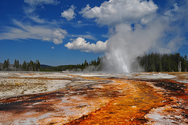 Unser weiterer Weg führt uns dann zum Midway Gesyir Basin. Hier ziehen immer wieder Wolken über die Sonne und sorgen nicht immer für ideales Licht. Das Grand Prismatic kann man von hier unten überhaupt nicht erfassen. Wir sind froh, es von oben gesehen zu haben.
