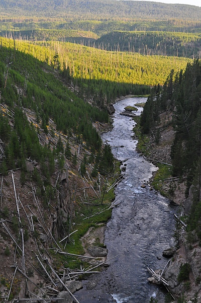 Dann geht es durch die Mitte des Parkes vorbei an den Gibbon Falls Richtung Canyon Village. Wir haben für eine Nacht eine Cabin bei der Lake Lodge reserviert. Auf unserem Weg dorthin kommen wir noch durchs Hayden Valley. Leider sind keine Bären unterwegs. Die Cabin ist eher minimalistisch ausgestattet, aber für eine Nacht ist sie uns leicht gut genug. Auch die Heizung funktioniert einwandfrei -  besonders wichtig, denn die Nächste sind im Yellowstone ziemlich kalt.