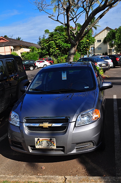 Unser Auto - auf Kauai in Grau, auf Maui in Rot, auf Oahu in Schwarz