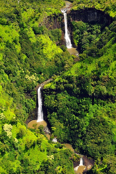 Wir fliegen mit einem anderen Paar und haben das Glück vorne sitzen zu dürfen. Marie neben dem Pilot und ich außen. Der Flug ist ein einziges Highlight und die spektakulären Ausblicke sind wohl kaum mehr zu überbieten. Wir fliegen über die Napali Coast, den Waimea Canyon und in den Waialeale Krater. Marie wird ein bisschen schlecht, da der Heli doch immer wieder ziemlich durchgeschüttelt wird. Nach rund 70 Minunten landen wir wieder – wir sind länger geflogen als geplant. Anscheinend hat das andere Paar die teurere Wasserfalltour gebucht und wir wurden mitbeglückt. Geil! So aber jetzt lass ich die Bilder sprechen: