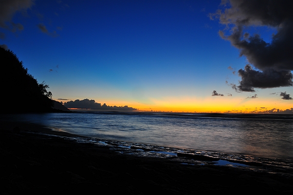 Den Sonnenuntergang wollen wir heute am Ke’e Beach genießen, allerdings starten wir zu spät von der Hanalei Bay und verpassen das Spektakel. Ärgerlich! Aber ein paar Fotos in schöner Stimmung sind noch möglich. Kaum wird es finster attackieren uns allerdings hunderte Insekten und wir müssen den Strand fluchtartig verlassen. Dann geht’s ein letztes Mal im Dunkeln zurück zu unserem Condo.