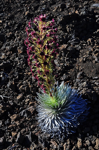 Haleakala steht an! Und zwar das volle Programm. Also aufstehen um 3:00. Das ist schon wirklich zach. Wir haben ja schließlich Urlaub… Schnell machen wir uns fertig und ein wenig später sitzen wir schon im Auto. Frühstück gibt’s im Auto. Die Auffahrt auf den Vulkan zieht sich gewaltig. Von Kihei werden 2 Stunden veranschlagt. Und um kurz nach 6 soll die Sonne aufgehen. Wir schaffen es in etwas mehr als eineinhalb Stunden auf den Berg und sind also leicht früh genug da. Aber trotzdem ist der Parkplatz am Red Hill schon voll. Auch der Parkplatz beim Visitor Center füllt sich von Minute zu Minute mehr. Gigantisch was hier für ein Personenaufkommen herrscht. Wir gehen im Dunkeln den White Hill Trail, um den Massen etwas zu entkommen. Aber keine Chance. Am White Hill sind wir zum Sunrise mind. 30 Personen. Das hätte uns auch gar nicht gestört. Wir haben einen guten Platz für unser Stativ gefunden. Wäre da nicht diese Kleingruppe von Japanern gewesen. Sie haben den besten Fotoplatz für sich beansprucht und das bis ca eine halbe Stunde nach dem Sunrise ohne anderen ein Chance auf ein Foto von dort zu geben. Ihr Führer war echt ein, verzeiht mir diese Ausdrucksweise, Arschloch. Er hat sicher eine Stunde ununterbrochen geschrien, Fotos von seiner Gruppe gemacht und ihnen lautstark Anweisungen gegeben. Hold the position! Keep your legs wide open! Ich fühle mich eher wie bei einem Pornodreh als bei einem spirituellen Erlebnis. Auf die Frage eines Anwesenden ob der Führer wohl nicht etwas leiser sein könnte, denn es seien auch noch andere Leute hier oben, die den Sonnenaufgang lieber in Ruhe genießen wollen würden, antwortete er, er sei heute als Erster hier oben gewesen und werde tun was er will. Ein Anderer hat ihn angemault, ob er nicht seinen Fotoplatz einmal jemand anderen überlassen könne, da meint er, nein er sei als erster hier gewesen. So ein …. Abgesehen von diesem Störenfried war der Sunrise sehr schön. Aber es sind schon Strapazen und eine eisige Kälte am Berg dafür zu ertragen.