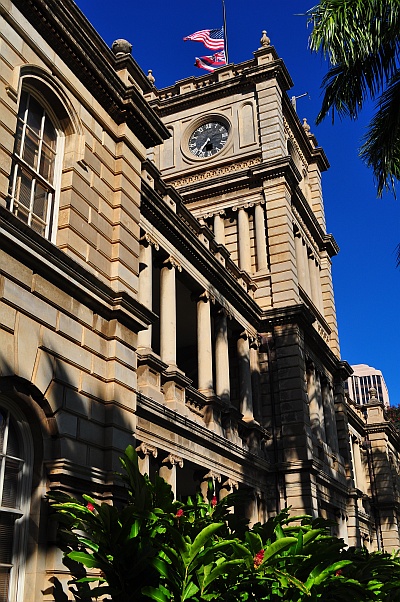 So, der letzte Halbtag auf Hawaii ist für uns angebrochen. In der Früh checken wir aus unserem Hotel aus und deponieren unsere gepäcksstücke bei der Gepäcksaufbewahrung. Mit dem Auto geht’s Richtung Downtown Honululu. Wir wollen uns ein bisschen die Innenstadt anschauen. Wir parken für ein paar Dollar beim Aloha Tower. Dieser ist leider noch geschlossen, also sehen wir uns die Stadt zuerst vom Boden aus an. Wir machen einen eineinhalb stündigen Rundgang an den bekanntesten Sehenswürdigkeiten vorbei. Ionani Palace, Falls of Clyde, Hawaii State Capitol…