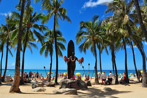 Am Waikiki Beach ist natürlich viel los und er hat nichts mit den einsamen Stränden die es anderswo auf der Insel gibt gemein. Trotzdem hätte ich dieses Erlebnis hier nicht missen wollen. Es war irgendwie lustig dieser ganze Trubel. Noch etwas habe ich gelernt: Wenn man 2 Stunden auf einem Surfbrett liegt sollte man sich die Kniekehlen eincremen.