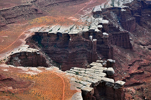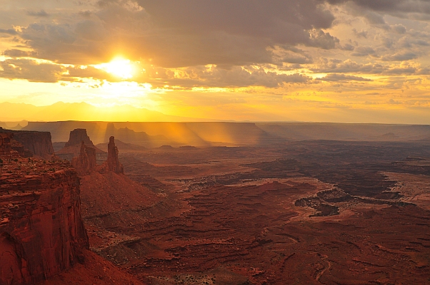 Nächste Stationen sind der Upheaval Dome und der Green River Overlook. So richtig will auch jetzt die Sonne nicht herauskommen, aber kurz zeigt sie sich ab und zu dann doch.