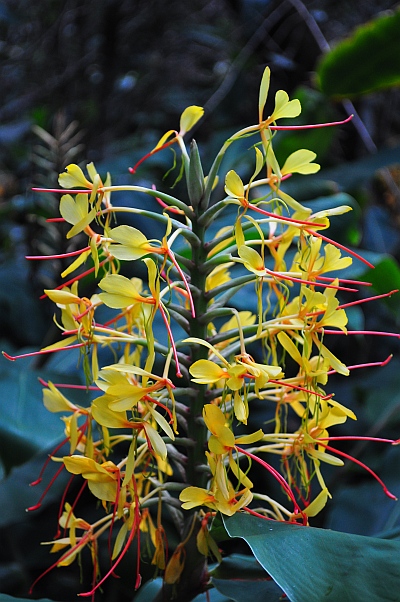 Die Pflanze mit den grossen gelben Blüten (Schmetterlingsingwer, Hedychium gardnerianum) ist ja leider ein Invasor; der stammt aus dem Himalaya und wuchtert überall in den wärmeren Regionen, wo er eingeführt wird, sofort alles zu. Wir haben ihn zuhause im Topf, traumhafte grosse Blüten, aber bei uns nicht winterhart.