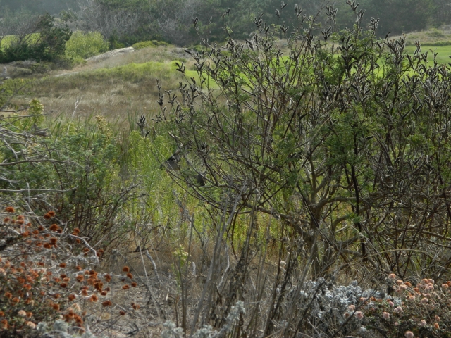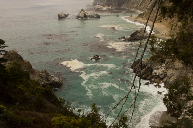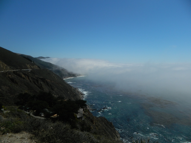 Schnell machten wir uns wieder auf den Weg und hielten an einem Parkplatz am Highway 1 an, trauten uns aber nicht den Weg zum Strand herunter und konnten das Meer auch nicht sehen.