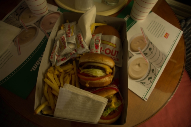 Wir fuhren diese Strecke fast komplett durch bis auf einen kurzen Stopp an einem In – N – Out, wo wir durch den Drive In fuhren und während der Fahrt aßen.