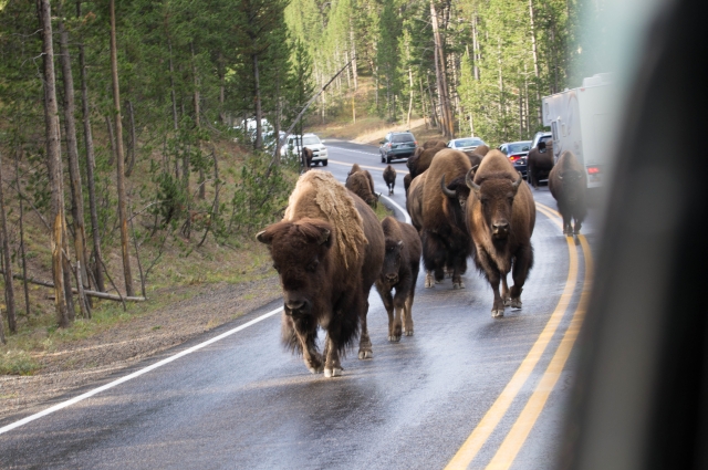 Gerade noch rechtzeitig erreichten wir die Lake Lodge, wo wir auch nur sehr langsam durchfahren konnten da auch hier eine Herde Bisons wartete.