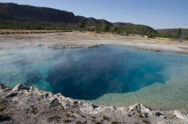 Total euphorisch von diesem tollen Anblick, ging es weiter zum letzten Stopp des Tages, dem Biscuit Basin, wo wir die kleine Runde von ca. 0,5 Meilen liefen.