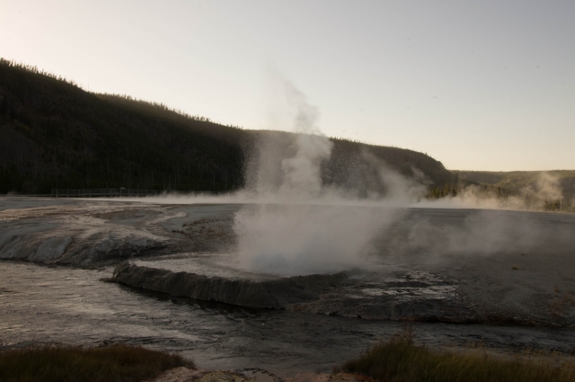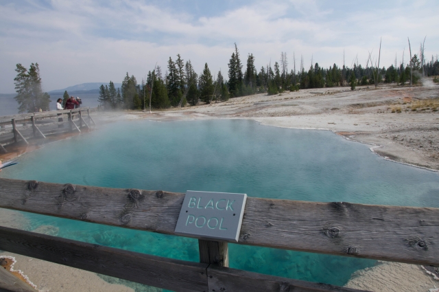 Da der Tag sich dem Ende zuneigte, fuhren wir wieder los. Unterwegs sahen wir Hinweisschilder zum Black Sand Basin und da der nächste Tag schon verplant war, stoppten wir hier auch noch.