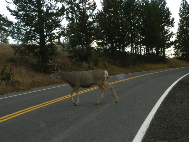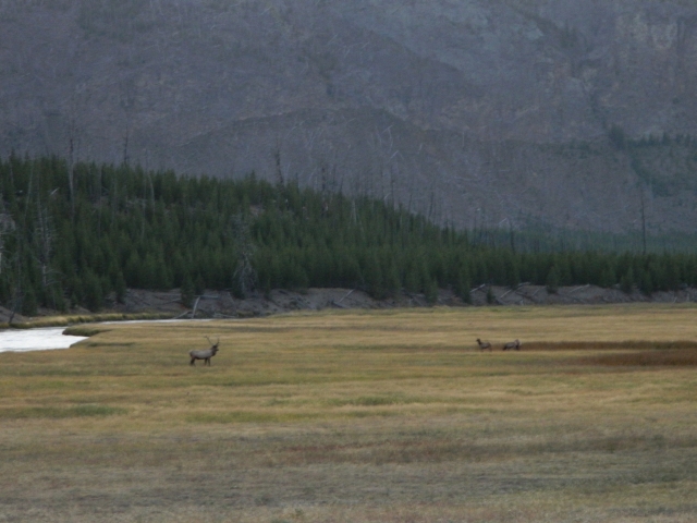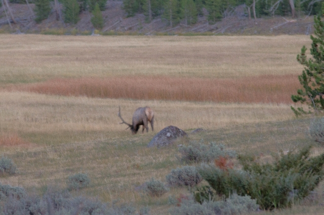 Somit ging die Sonne für uns zu früh auf und wir blieben im Hayden Valley, wo wir am Straßenrand parkten und auf der anderen Seite einen Elch beobachten konnten. Bilder konnten wir auf Grund der Lichtverhältnisse nicht machen.