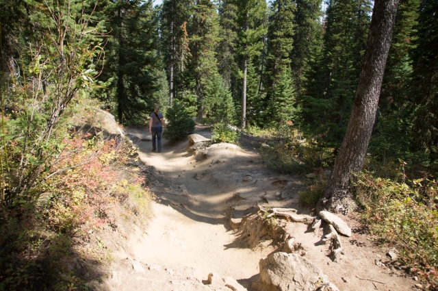 Hier genossen wir etwas diesen gewaltigen Anblick und beobachteten eine amerikanische Familie, die den Berghang ein Stück eher hinaufkletterte. Sie wurden scheinbar vom Vater angerieben, da er scheinbar immer noch die richtige Fotoposition suchte. Sie waren bestimmt 30 Meter höher als wir, aber scheinbar hatten sie immer noch Bäume vor der Linse.
