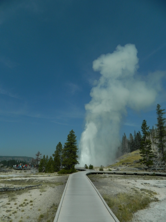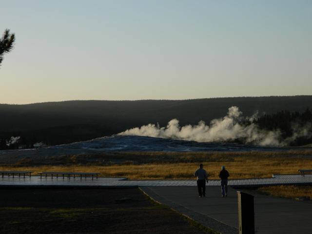 Auf dem Trail trafen wir ein älteres amerikanisches Paar, das uns fragte, ob wir bei den Falls waren oder den Grand Prismatic fotografiert hatten.