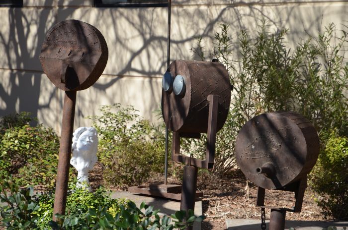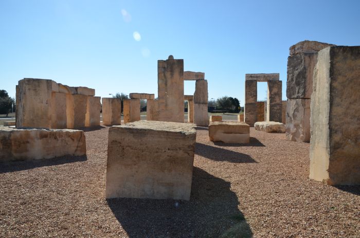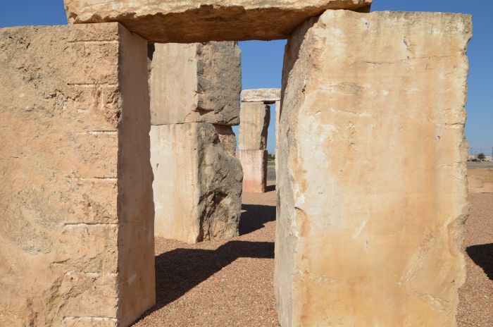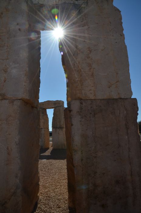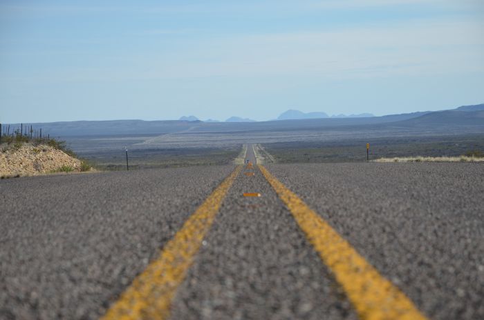 Einen ersten Zwischenstopp legen wir stattdessen in Odessa ein, wo es an der dortigen Universität einen originalgetreuen Nachbau von Stonehenge aus Sandstein gibt. Schöne Sache um sich kurz die Beine zu vertreten. Auf der Suche nach einer Toilette im benachbarten Uni-Gebäude stoßen wir noch auf einen Innenhof mit Skulpturen. Weiter auf der Interstate und eher eintönig geht es bis Pecos, wo wir Richtung Süden abbiegen und auf über viele Meilen schnurgeraden Strecken Richtung Süden und in Richtung der ersten Berge fahren.