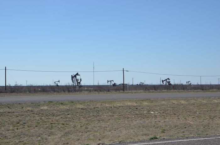 Wir starten früh, die Strecke ist lang. Mit jeder Meile wird die Landschaft karger und nach jeder neuen Kurve und Kuppe öffnet sich das Land in epischer Breiter. Der „Big Texas Sky“ macht dem „Big Montana Sky“ durchaus Konkurrenz. Einen Stopp in Merkel mit dem „Whoaa Merkel  - Merkel Museum“ sparen wir uns, so regierungstreu sind wir dann auch nicht. Zwischendurch stinkt es kräftig nach Öl und links und rechts der Interstate laufen die dazugehörigen Pumpen. Etwas überraschend und entgegen der Klischees sehen wir aber deutlich mehr Windräder als Ölpumpen.