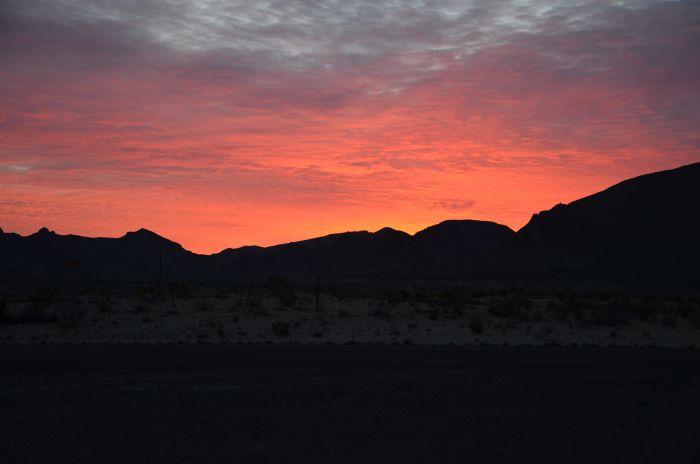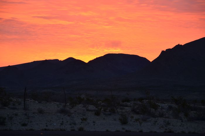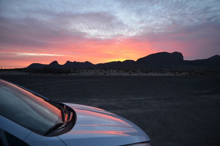 Freitag, der 13. und pünktlich um 2:30 am Morgen beginnt das Unglück: Im ganzen Motel fällt der Strom aus und so müssen wir uns morgens mit Taschenlampe anziehen und das mexikanisch-amerikanische Frühstücksbuffet im Dunklen genießen. Das sollte es aber an Unglück auch gewesen sein und früh um 8 brechen wir bei leuchtendem Sonnenaufgang Richtung Big Bend N.P. auf.