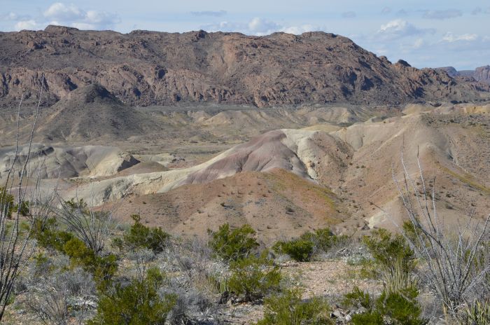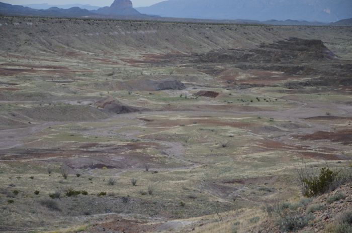 Schon der Weg zum Eingang ist toll, Badlands in immer wieder neuen Variationen, Berge, Canyons, Kakteen usw. und so geht es auch den ganzen Tag weiter. Wir löhnen unsere 20 Dollar für den Eintritt und dann geht es gleich rechts ab auf die Old Maverick Road, eine 13 Meilen lange Gravel Road, die uns zum Santa Elena Canyon bringt. Zwischendurch halten wir immer wieder an um die beeindruckende Landschaft zu genießen. Es ist teilweise so urzeitlich wüst, dass uns auch eine Herde grasender Brachiosaurier nicht mehr überraschen würde.