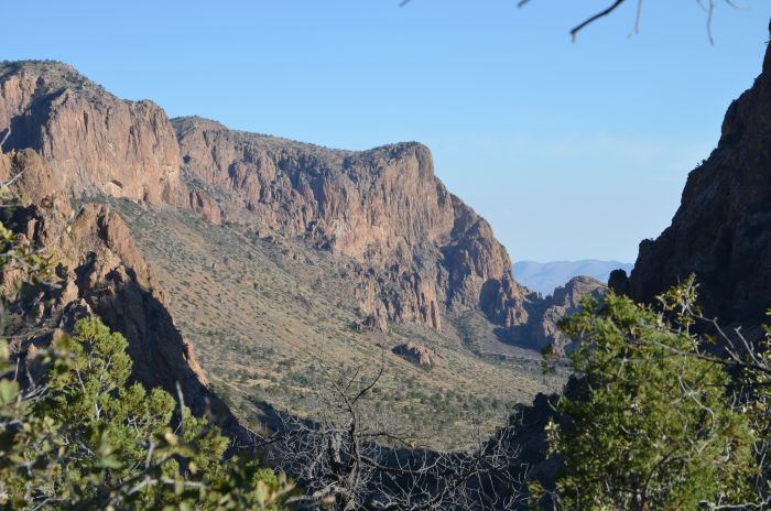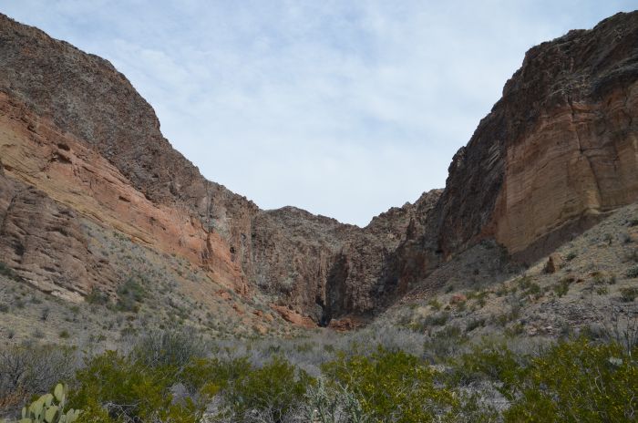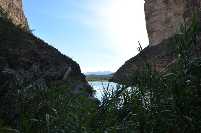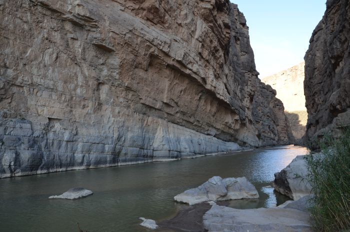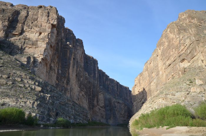 Big Bend National Park gefällt uns von Anfang an und auch wenn für diesen Park Hochsaison ist, ist es durchgehend angenehm leer. Am Santa Elena Canyon treffen wir zum ersten Mal auf den Rio Grande, der aber eher als Rio Mickrig daherkommt, die allgemeine Trockenheit schlägt auch hier unten mächtig durch. Auch einen ersten Blick über die Grenze nach Mexiko kann man hier werfen, der Übertritt wäre durch den seichten Fluss verlockend einfach. Doch wir halten uns lieber am Santa Elena Trail, der uns für etwa 45 Minuten so tief wie möglich in den mächtigen Canyon hinein- und auch wieder hinausführt. Ein schöner Einstieg in den Tag.
