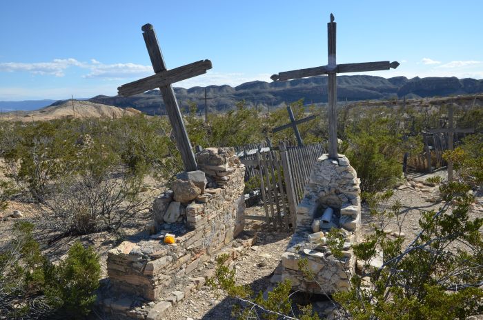Danach reicht es uns mit Wandern für den heutigen Tag, wir fahren aus dem Park wieder hinaus und weiter in die Terlingua Ghost Town. Die alte und verfallene Minenstadt wartet heutzutage mit einer Aussteigerkommune und dem „legendären“ Starlight Theatre auf. Sonst gibt es nur noch einen sehenswerten Friedhof. Im Starlight Theatre ist es voll, wir warten gut 30 Minuten auf einen freien Tisch – finden aber, dass man das mit einem Margarita auf der Veranda und Blick auf die tolle Landschaft ganz gut aushalten kann. Danach gibt es Steak und Chicken in guter Qualität und für die Abgeschiedenheit sogar zu annehmbaren Preisen. Und Livemusik ist auch geboten.