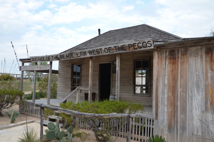 Langer Fahrtag die Zweite, müssen wir doch vom Big Bend wieder zurück in die Zivilisation kommen. Also stehen wir im Morgengrauen auf, das Hotel war ganz okay bis auf die vier Züge in der Nacht, die mit lautem Signalhorn am Bahnübergang gegenüber auf sich aufmerksam gemacht haben. Früh los und viele Meilen über endlose gerade Strecken abgerissen, dann taucht der 45-Seelen-Ort Langtry auf. Als alter Lucky Luke-Leser ist einem der Richter Roy Bean ein wohlbekannter Begriff und der Ort eignet sich gut, um sich das erste Mal kurz die Füße zu vertreten und den historischen Saloon zu besichtigen. Der Rest von Langtry ist ziemlich verfallen.