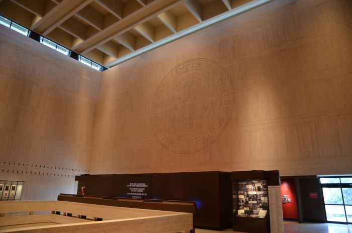 In der texanischen Hauptstadt beginnen wir den Tag mit Ausschlafen, nach den anstrengenden letzten Tagen kommen wir vor 9 nicht aus den Federn und finden zu unserer Freude Breakfast Tacos vor. Dann geht es in die Stadt und dort zuerst in die Lyndon B. Johnson Library auf dem Campus der Universität. Die Bibliothek hält ein umfangreiches Archiv über das Leben und die Präsidentschaft von LBJ vor und hat Teile daraus in Form einer sehr sehenswerten Ausstellung aufbereitet.