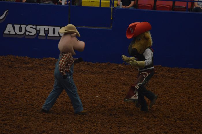 Doch wir haben noch etwas vor, das urtexanische alljährliche Rodeo ist zur Zeit in Austin. Wir fahren also raus zum Veranstaltungsgelände wo es neben der Rodeohalle auch eine große Kirmes, Landmaschinenausstellung, Streichelzoo usw. gibt. Es wirkt einerseits wie ein Rummel, aber andererseits auch wie wenn die Landjugend auf Brautschau geht.