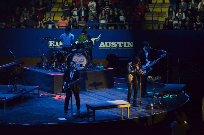 Nach dem Rodeo wird eine Bühne aufgebaut, denn an jedem Abend des zweiwöchigen Rodeos gibt es nach dem sportlichen Teil noch Live-Musik. Heute spielt Panic! at the Disco – eine Band, deren Name wir noch nie gehört haben, die aber bei den US-Teens ganz bekannt sein muss, die jungen Mädels kreischen wie zu besten Take That Zeiten, wenn sich der Sänger mal kurz das T-Shirt anhebt oder ins Publikum schmachtet. Die Band spielt Alternative Rock, ganz okay, aber immerhin haben wir in der „live music capital of the world“ so auch einmal Live-Musik gehabt.