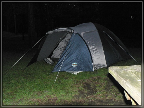 Als wir wieder am Zeltplatz sind, geht Martin Holz suchen und ich fange gleich an zu Lesen. Martin kommt zurück und erzählt Stolz, dass er einen Hirsch gesehen hat und ich ärgere mich, wäre ich nur mitgegangen. Naja..... Das mit dem Feuer dauert auch ein bisschen, da das Holz doch ein bisschen feucht ist, aber Martin schafft es doch  :fire: und so können wir ein tolles Abendessen mit Pizza, Wurst und Salat genießen  :essen: . Wir spielen danach noch ein bisschen Karten (Kreuzverhör) und als es immer dunkler wird und der Wind wieder auffrischt verziehen wir uns in unser Zelt.