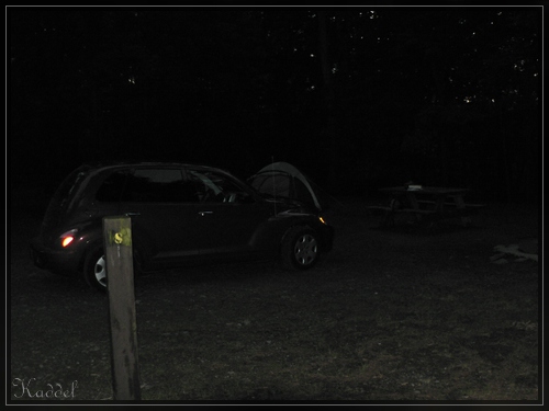 Dort hören wir noch ein bisschen "Die Reise zum Mittelpunkt der Erde" und als wir eigentlich schlafen wollen......tja.....da ging die Party erst los. Aber nicht unsere. Genau auf dem Site neben uns waren 7 Jugendliche. Diese hatten einen tragbaren CD-Player. Dieser lief auf voller Lautstärke. Dazu grölten sie rum, singen kann man das nicht nennen, schrien und führten sich auf, als wären sie die einzigen hier  :drink: . Das noch dazu in einem State Park in dem es ja auch ein paar arme Tierchen gibt. Ich war ganz schön sauer, an schlafen war erstmal nicht zu denken. Martin meint ob er, was sagen soll und ich meine nur er soll das lassen, was weiß ich wie viel die getrunken haben. Nicht dass die dann überreagieren  :angst:. So ergeben wir uns unserem Schicksal. Ich lege mich auf das eine Ohr und stecke in das andere einen meiner In-Ear-Phones. Das dämpft zumindest ein bisschen die Schreierei. Martin hört auch noch weiter mit dem anderen Ohrstöpsel. Irgendwann gegen Mitternacht hört die Party auf. Martin meint sie wurden ermahnt und jeder musste 100 $ zahlen, wenn er es richtig mitgekriegt hat. Na vielleicht sollte dann zumindest unsere nächste Nacht ruhiger werden.