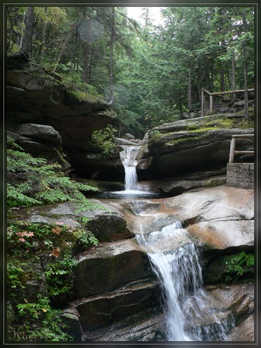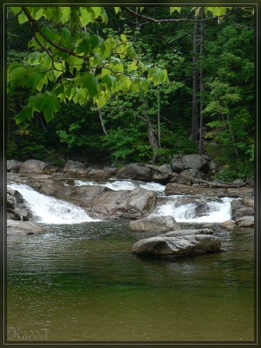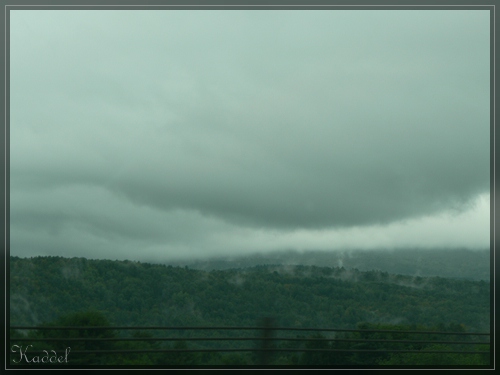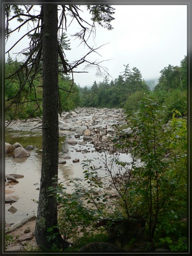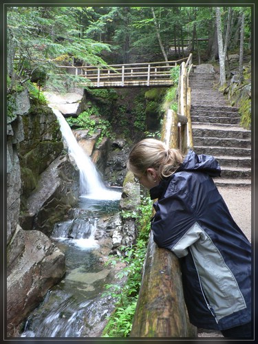 So langsam gewöhnen Martin und ich uns an die Zeitumstellung und daher passt sich unsere Schlafzeit den Gegebenheiten an. Sprich wir stehen jeden Tag später auf. Heute ist es 8:30 als wir uns aus dem Bett bewegen. Wir vertilgen unsre restlichen Essensreserven als Frühstück und packen danach unseren ganzen Kram zusammen um es in unsere rote Knutschkugel zu packen. Als wir vor die Tür gehen, kriegen wir erst mal einen Schock. Keine Angst unser Auto ist noch da und heil. Nein... wir kriegen einen Temperaturschock . Es hat über Nacht still und heimlich von gestrigen 100 F auf um die 55 F abgekühlt und es hat aus allen Kübeln zu Regnen angefangen. Gar nicht net  :nono: . Wir versuchen gute Miene zu bösen Wetter zu machen und fahren los Richtung Kancamagus Highway.