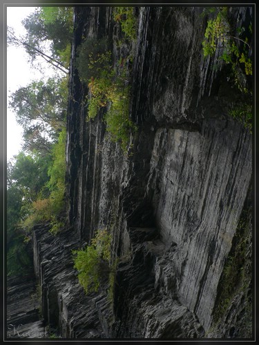 Rechts neben uns geht es Senkrecht in die Höhe. Die Schichten der Felsen sind dünn und es ist total interessant diese Strukturen genauer zu betrachten. Danach geht es über eine kleine Brücke von der aus man noch diesen netten Blick hat.