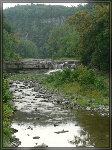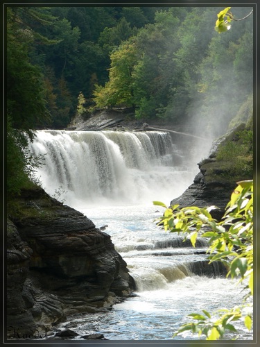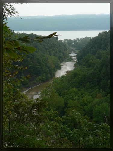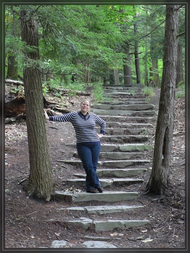 Naja wir beschließen noch einen Spaziergang zu den Lower Falls zu machen. Ich freue mich darauf, denn schließlich war ich diejenige von uns zwei, die unbedingt in diesen State Park wollte. Der Grund dafür war, und ist immer noch, das Buch "Mein Feuer brennt im Land der Fallenden Wasser" von Rainer M. Schröder. Dieses Jugendbuch erzählt die Geschichte Mary Jemison. Zwar nicht ganz original, da es ja ein Roman ist. Aber eben die Wasserfälle dieses Parks kommen eben in diesem Roman vor. Es ist doch ein ganz schönes Stück zu den Lower Falls, aber der Weg wird belohnt durch wunderschöne Ausblicke auf den Wasserfall.