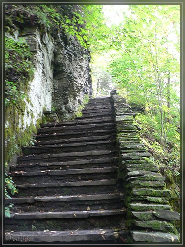 Kurz danach geht es viele Stufen abwärts. Bis hinunter zum Bach, den man dann überquert um die Stufen auf der anderen Seite wieder hinauf zu gehen.