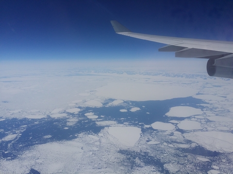 Boarding beginnt pünklich, wir sitzen im A340-300 auf 38A & C, eine Zweierreihe am Fenster. Dummerweise ist unter meinen Sitz eine Metallbox, die mir Raum für meine Haxen klaut. Das hat Seatguru nicht angezeigt. Wir starten um 10:30 Uhr mit 15 Minuten Verspätung und fliegen zunächst nur Richtung Norden. Über das Essen decken wir mal den Mantel des Schweigens, ansonsten sind die Damen bei der LH sehr nett und aufmerksam. Wir quälen uns mit 3 Filmen über die 10 Stunden Flug. Alleine die Aussicht auf Grönland ist erwähnenswert.