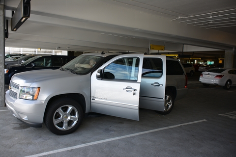 Nachdem wir unsere Koffer in dem neben dem Band abgestellten Haufen gefunden haben, fahren wir zum Rental Car Center. Mal schauen, was Hertz uns vorbereitetet hat. Wir wollten einen Fullsize SUV. Auf Nummer 53 soll er stehen...ah, da ist er ja! So groß hatten wir ihn nicht erwartet  :lol: