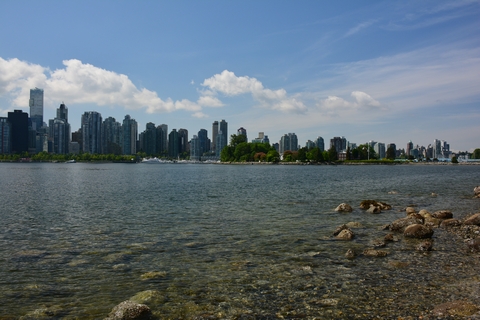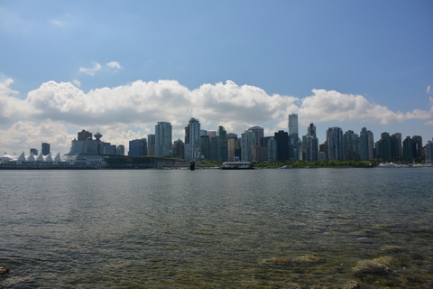 Auf dem Weg zum Brockton Point kommen wir bei den Totem Poles vorbei, die an dei ehemaligen Bewohner des Parks erinnern sollen. Wir treffen wir auch auf die erste Massenansammlung von Touristen. Wir lassen diese hinter uns und laufen weiter Richtung Wasser. Vom Bockton Point aus hat man tatsächlich einen schönen Blick auf Downtown