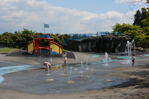 Wir machen uns auf den Weg am Ufer entlang zum Prospect Point. Unterwegs passieren wir einen Aqua Park für Kids mit zugehöriger Trockenanlage