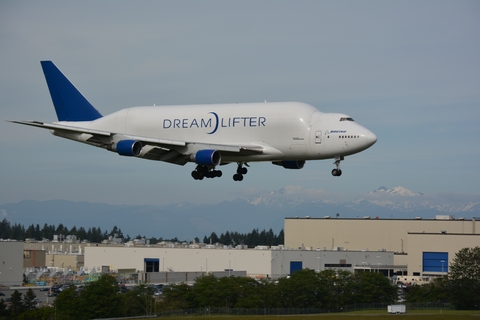 und anschliessend landet der Dreamlifter, eine extra umgebaute Maschine, welche die vorgefertigten Teile für den Dreamliner liefert. Sehr cool!