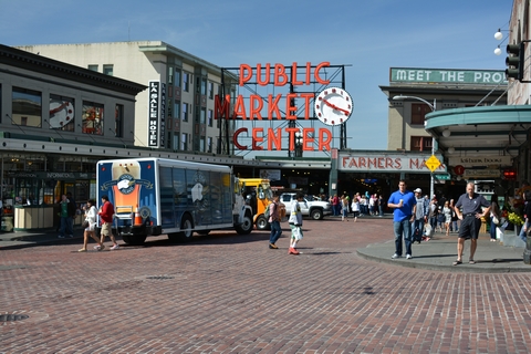 Und wieder um 7 Uhr wach, schon komisch. Nach einem kleinen aber feinen Frühstück in der Club Member Lounge im 32. Stock des Crown Plaza laufen wir Richtung Pike Market Place. Das Wetter zeigt sich mit 18° und Sonne von seiner besten Seite.