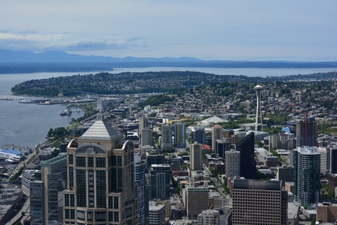 Wir legen eine Pause ein und machen uns um 14:15 Uhr auf den Weg zum Columbia Center, dem höchsten Gebäude der Stadt. Hier gibt es im 72. Stock den Sky View, da wollen wir hin. Leider sind inzwischen teilweise Wolken aufgezogen.